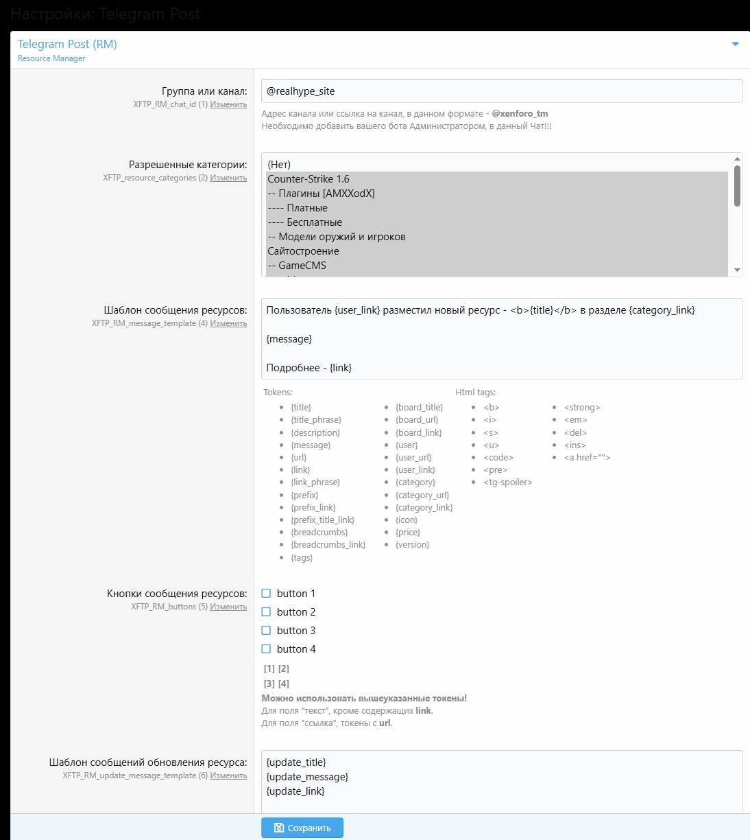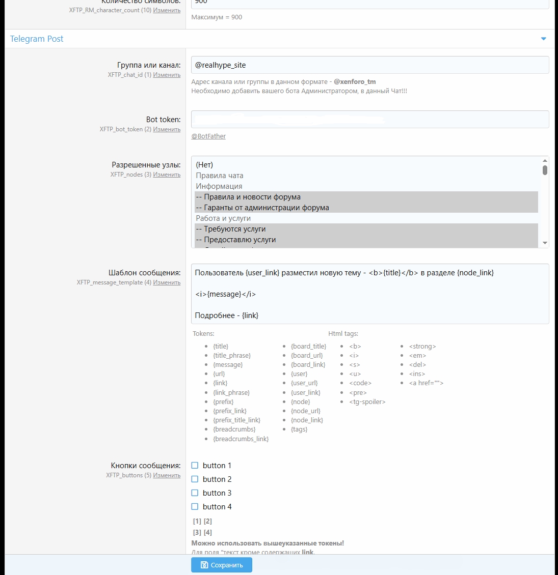 Xenforo Русификация Русский язык для Telegram Auto Posting 2.0.9