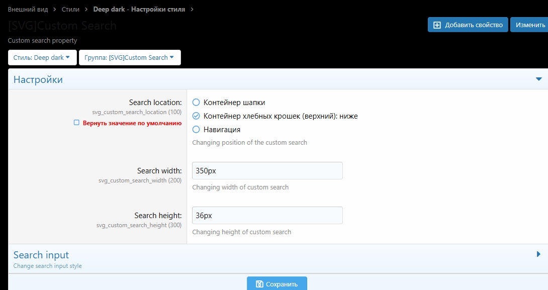 Внешний вид - Стили - Ваш стиль - Настройки стиля - [SVG]Custom Search