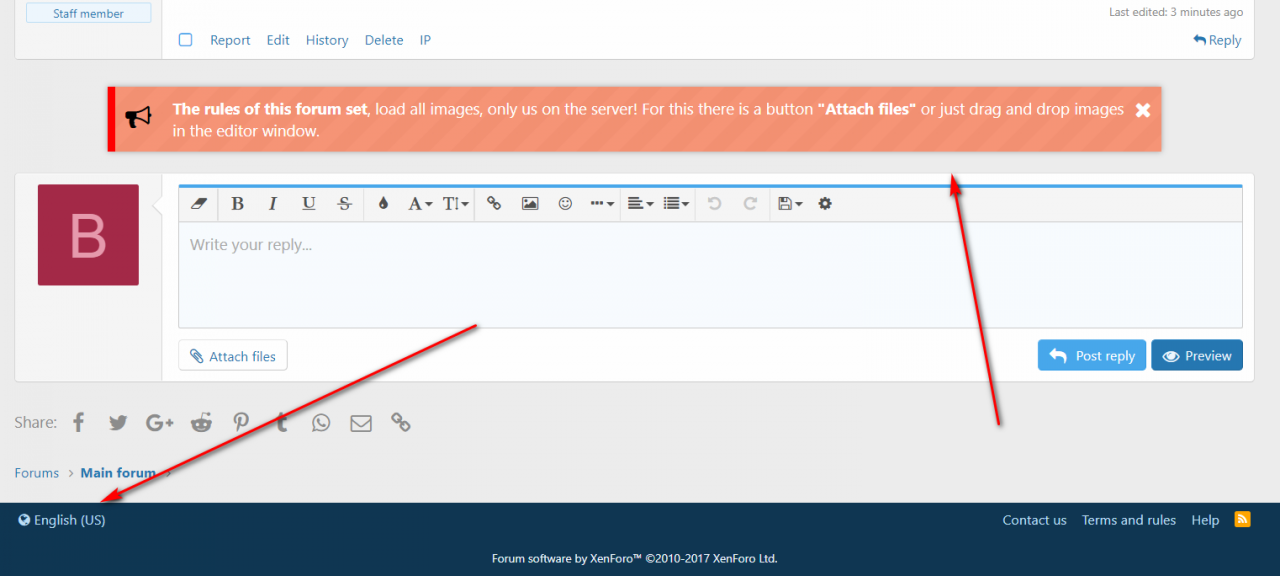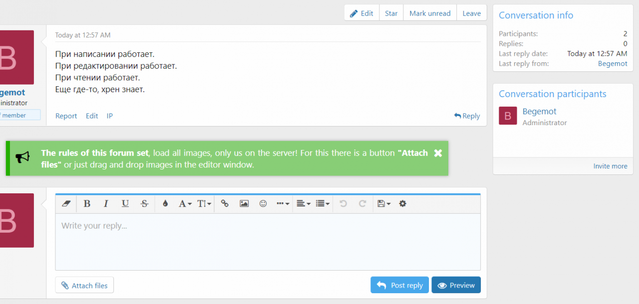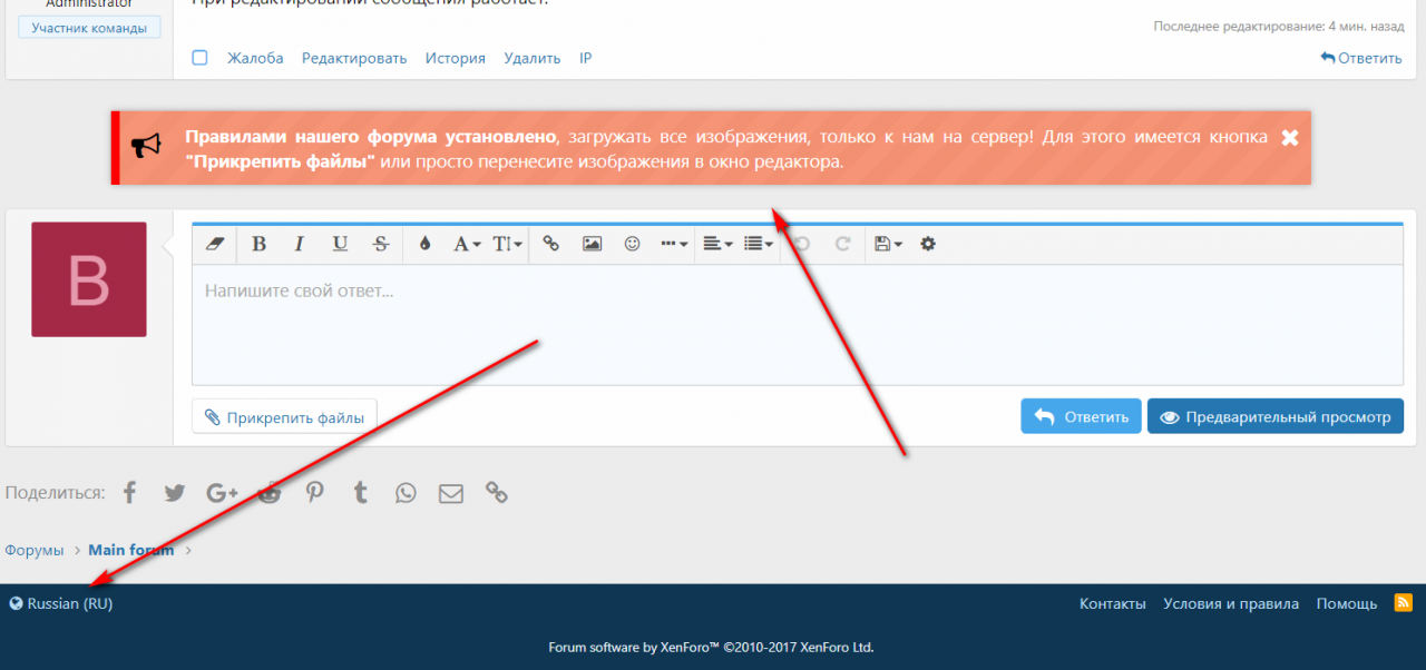 Этот аддон добавляет сообщение над редактором в темах и беседах.