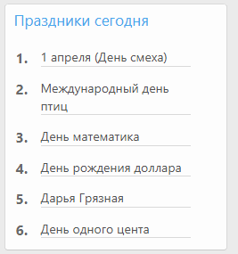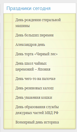 ...Дополнение выводит праздники на каждый день. Праздники забираются с этого сайтаУ вас нет разрешения на просмотр ссылки. Вход или Регистрация
