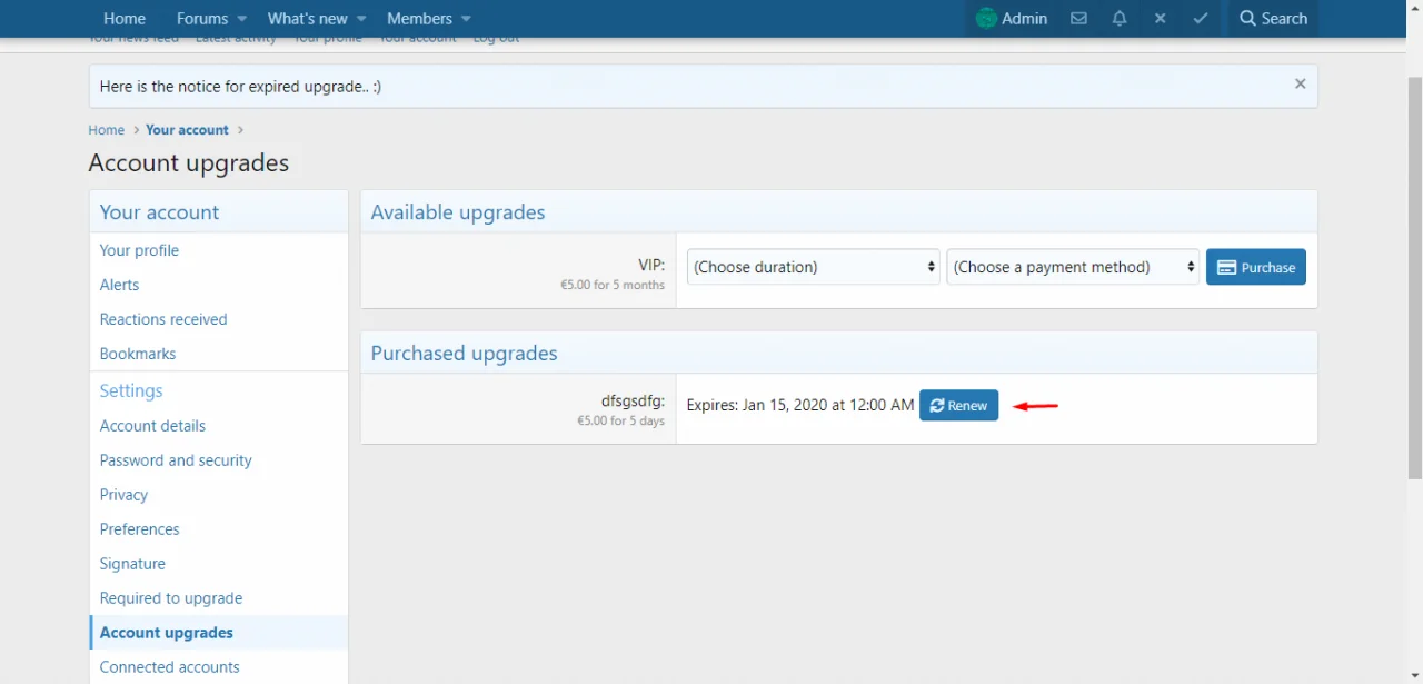 Это дополнение позволяет вам разрешать пользователям обновлять свои обновления до истечения срока их действия, отправлять электронное письмо / переписку с уведомлением по истечении срока действия с просьбой продлить их и многое другое.