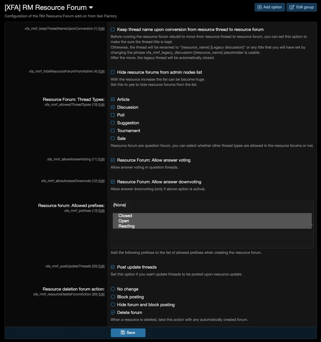 - Предоставьте параметры для управления разрешенными типами тем для форумов ресурсов.