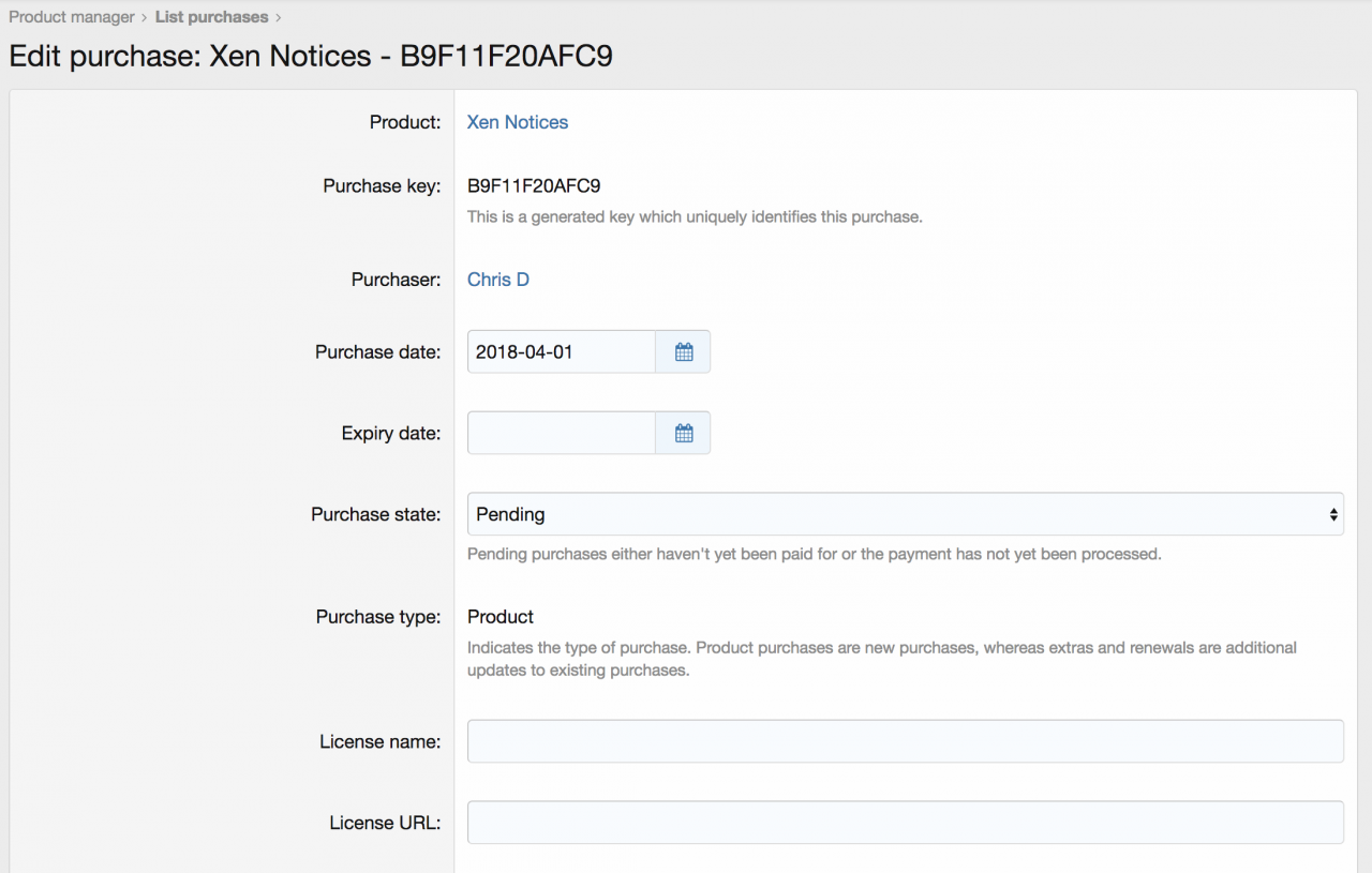Помимо возможности редактировать существующие покупки, вы также можете создавать совершенно новые покупки. Например, если вы раздаете продукт бесплатно.