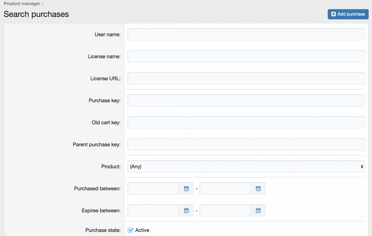 Ваши пользователи будут отслеживать свои покупки с помощью страницы "Ваши покупки". Конечным пользователям обычно видны три состояния покупок: Активный, неактивный и просроченный.